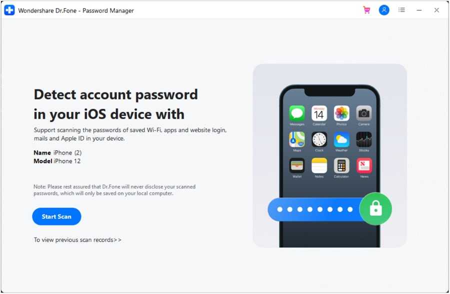 После подключения вы можете начать сканирование iPhone, щелкнув значок Начинать кнопку в правом верхнем углу.