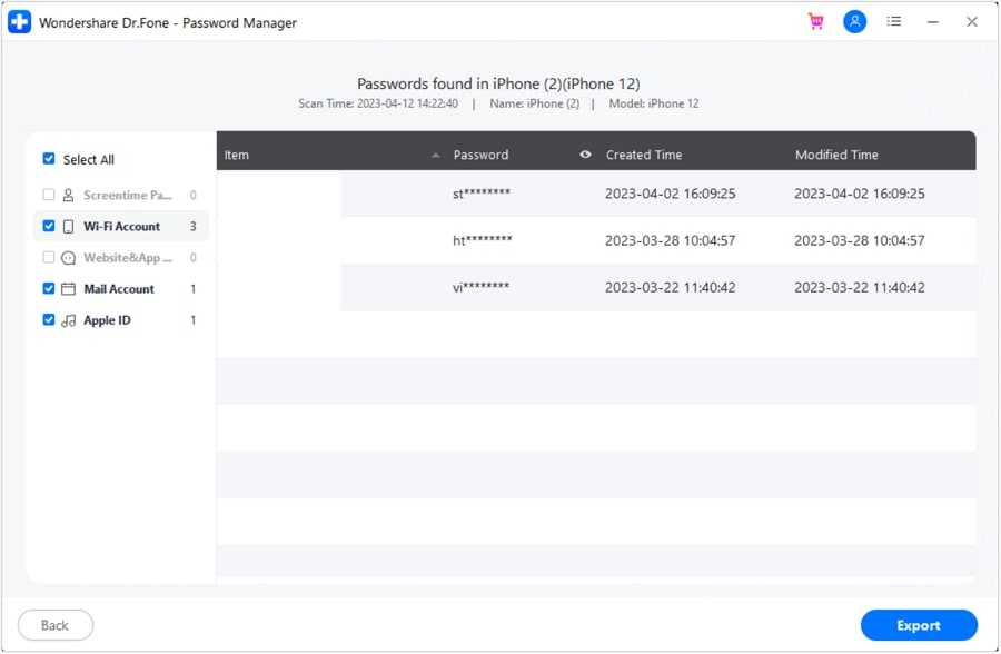 После сканирования вы должны увидеть список всех данных вашей учетной записи и паролей. И они будут автоматически отсортированы по типу: учетная запись WiFi, Интернет и приложение, учетная запись электронной почты, Apple ID, экранное время и кредитная карта. Таким образом можно узнать любой пароль.