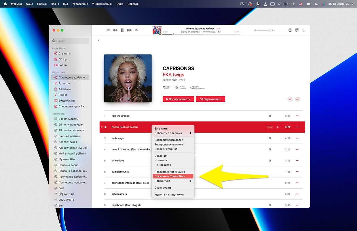 Наведите курсор на песню, откройте контекстное меню и нажмите Показать в iTunes Store.