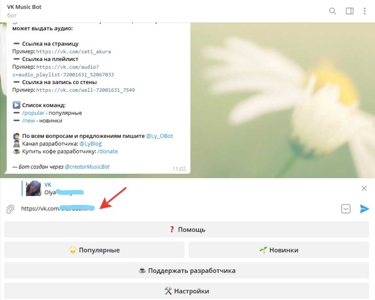 После того, как вы скопировали ссылку на свою страницу, отправьте её боту.