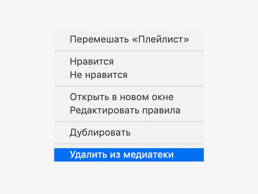 - Чтобы удалить список воспроизведения целиком нажмите кнопку … , а затем выберите пункт Delete from Library. В появившемся меню выберите пункт Delete Playlist.