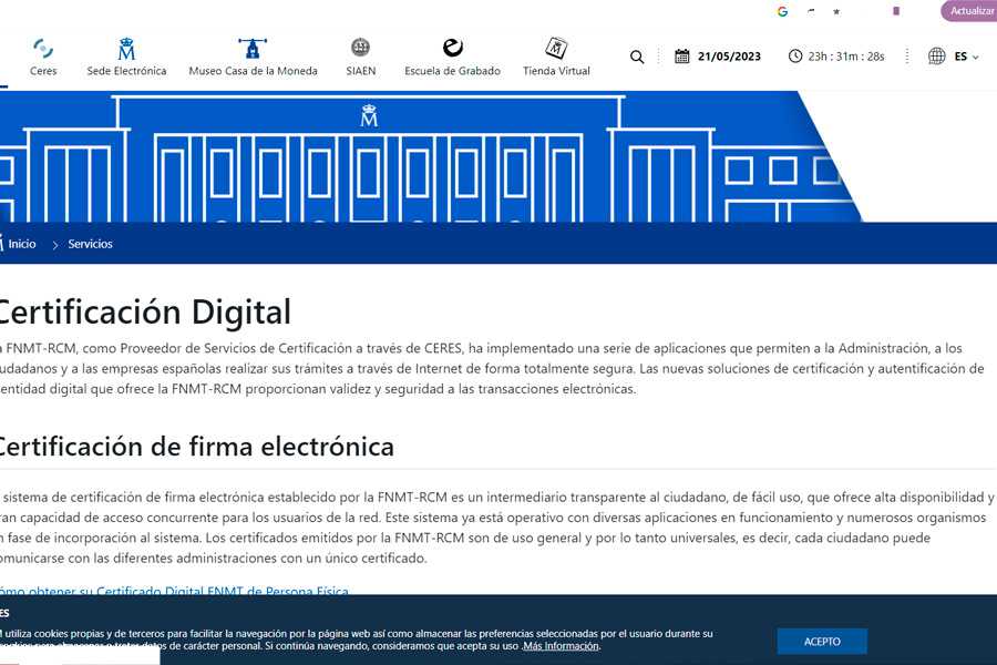 Первое, что вы должны знать, это значение цифрового сертификата. Это документ, который выполняется в цифровом виде и подготовлен Фабрикой национальных валют и марок правительства Испании.