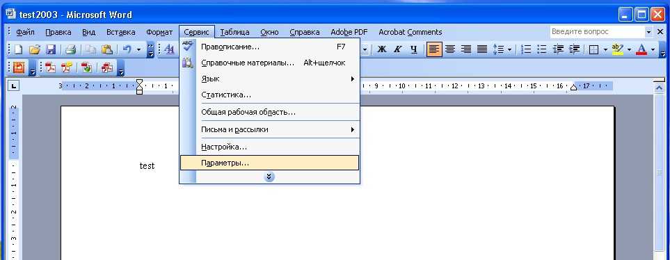 Через верхнее меню пройдите в «Сервис-Параметры»