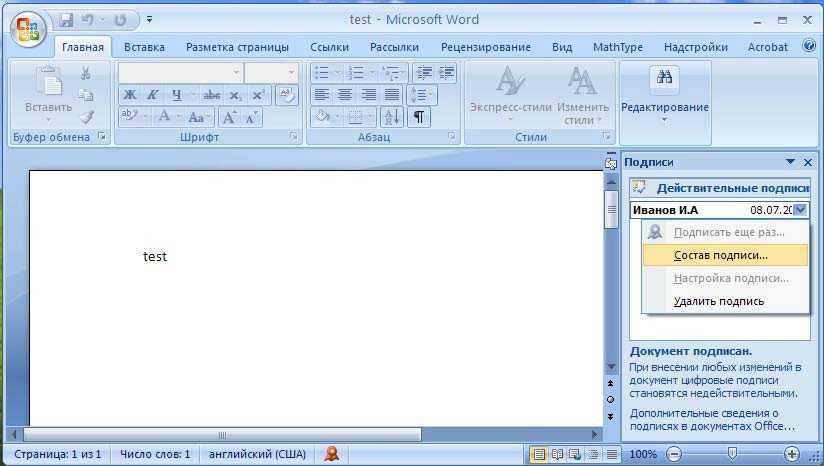 Как подписать документ ворд электронной подписью с использованием плагина КриптоПро office signature: