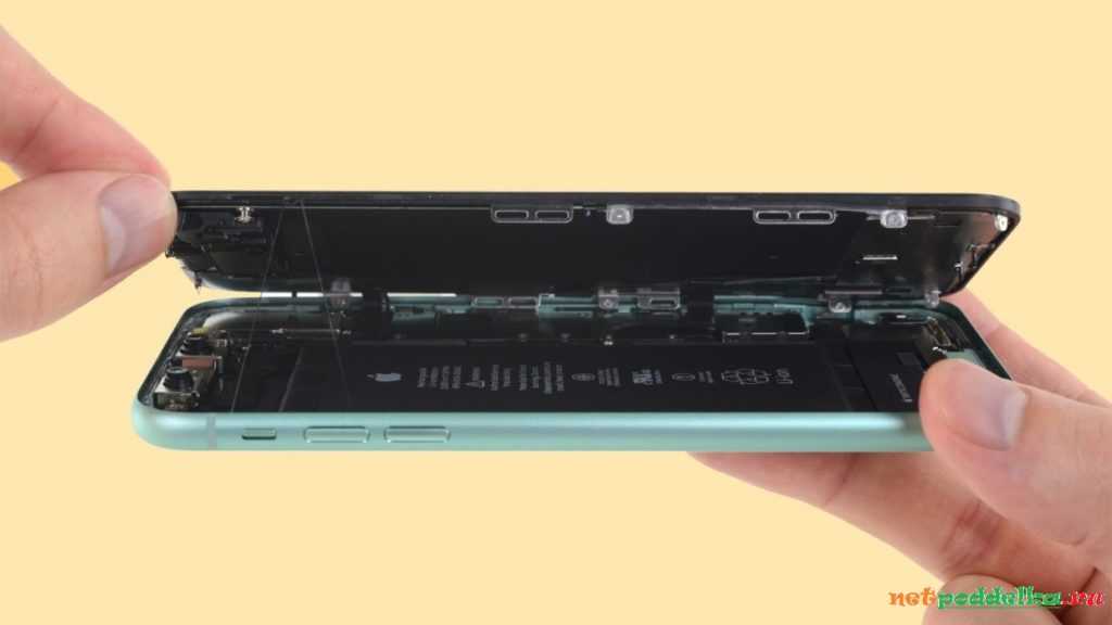 Крышка iPhone 11 снимается только при откручивании шурупов по бокам разъема зарядки. Поэтому если их головки исцарапаны или повреждены, то гаджет однозначно вскрывался, причем довольно небрежно.