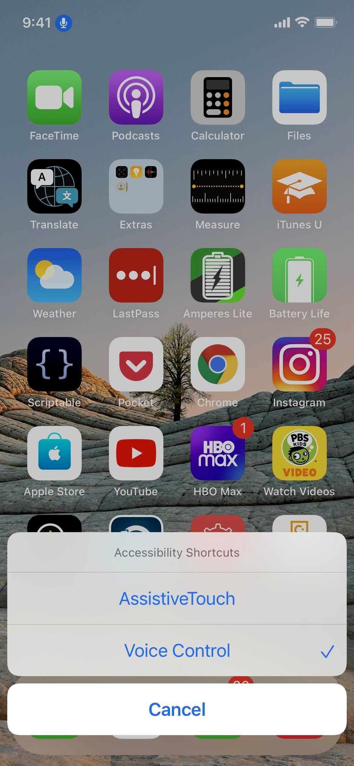 - Настройте ярлык специальных возможностей. Перейдите в «Настройки» -> «Специальные возможности» -> «Ярлык специальных возможностей» и установите флажок «Голосовое управление». Затем каждый раз, когда вы трижды нажимаете боковую кнопку или кнопку «Домой», включается/выключается голосовое управление. Если ярлыку назначено не только голосовое управление, его нужно будет выбрать в меню после тройного щелчка.