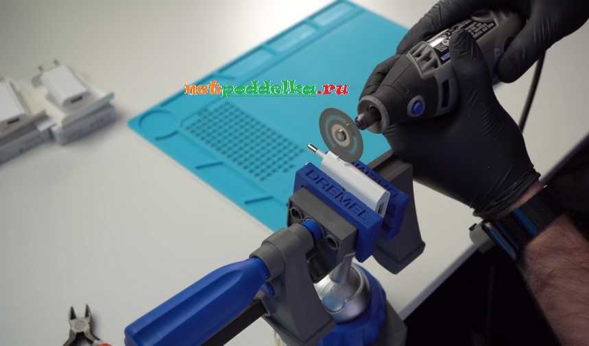 Гораздо труднее будет разобрать одноразовую зарядку, корпус которой является монолитным. Именно ей комплектуются последние модели iPhone. В таком случае придется взять нож и резать пластик. Аккуратно при помощи острого ножа срезают одну из частей пластикового корпуса. Будьте предельно осторожны, чтобы не повредить внутренние компоненты. Заменив предохранитель придется склеивать обе части.