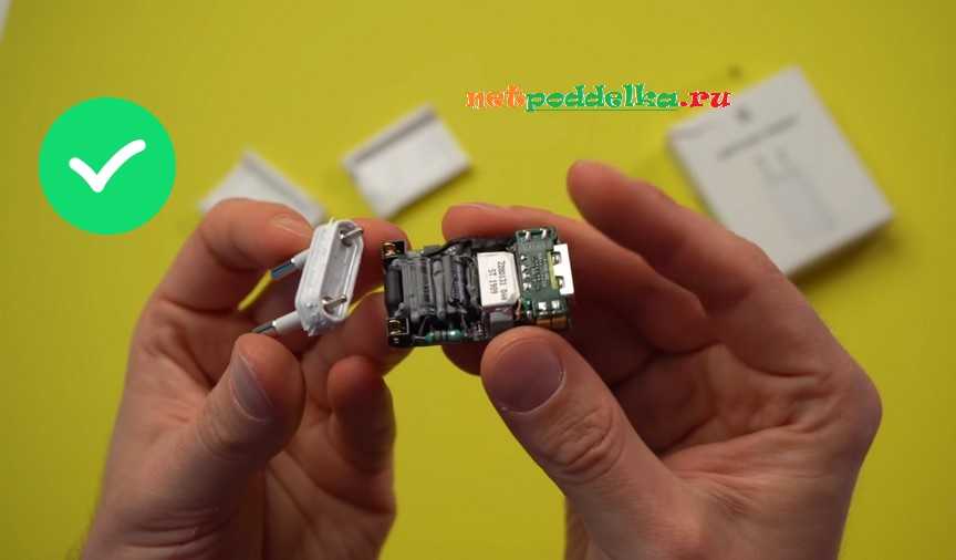 Один из радикальных способов как определить оригинальную зарядку на iPhone предполагает ее разборку. У копий используются более дешевые компоненты. Компоновка у пали всегда гораздо хуже.