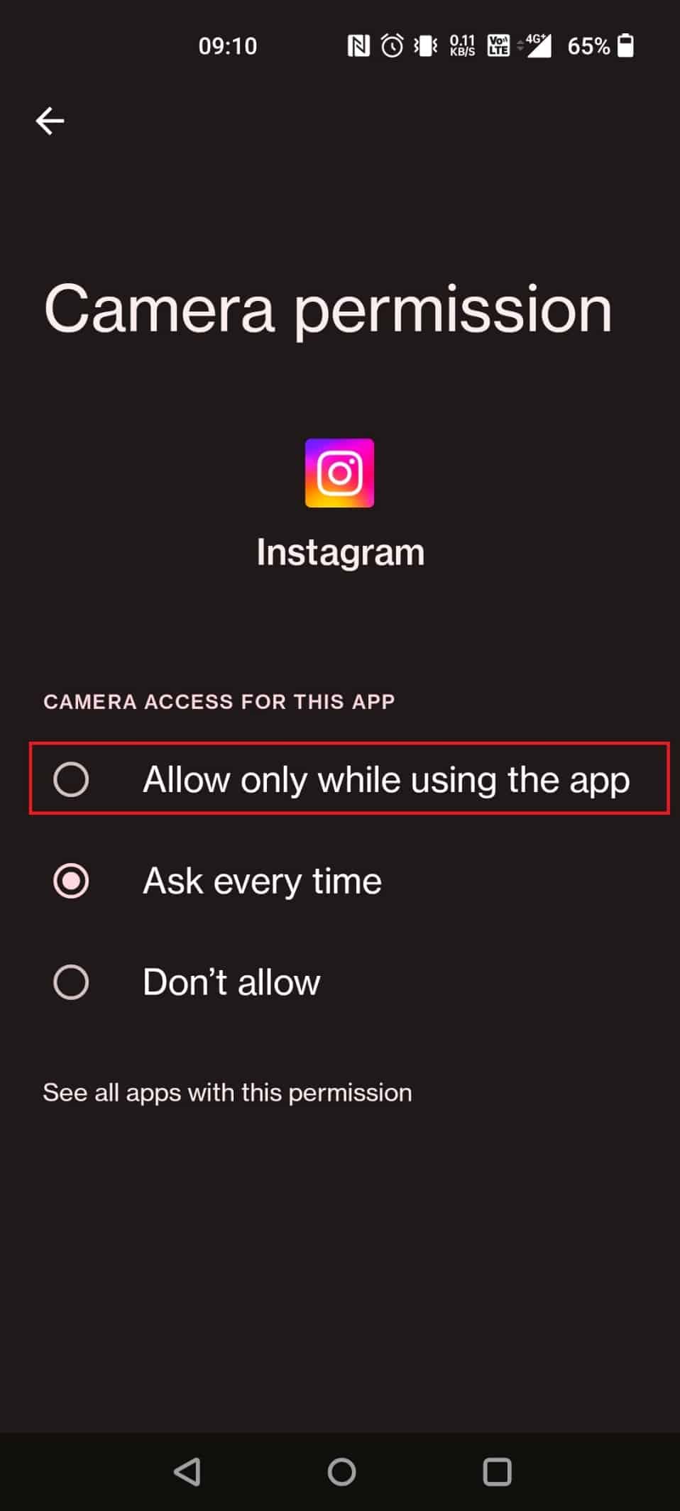 Обратите внимание, что вы также должны активировать микрофон, чтобы вы могли использовать камеру в Instagram
