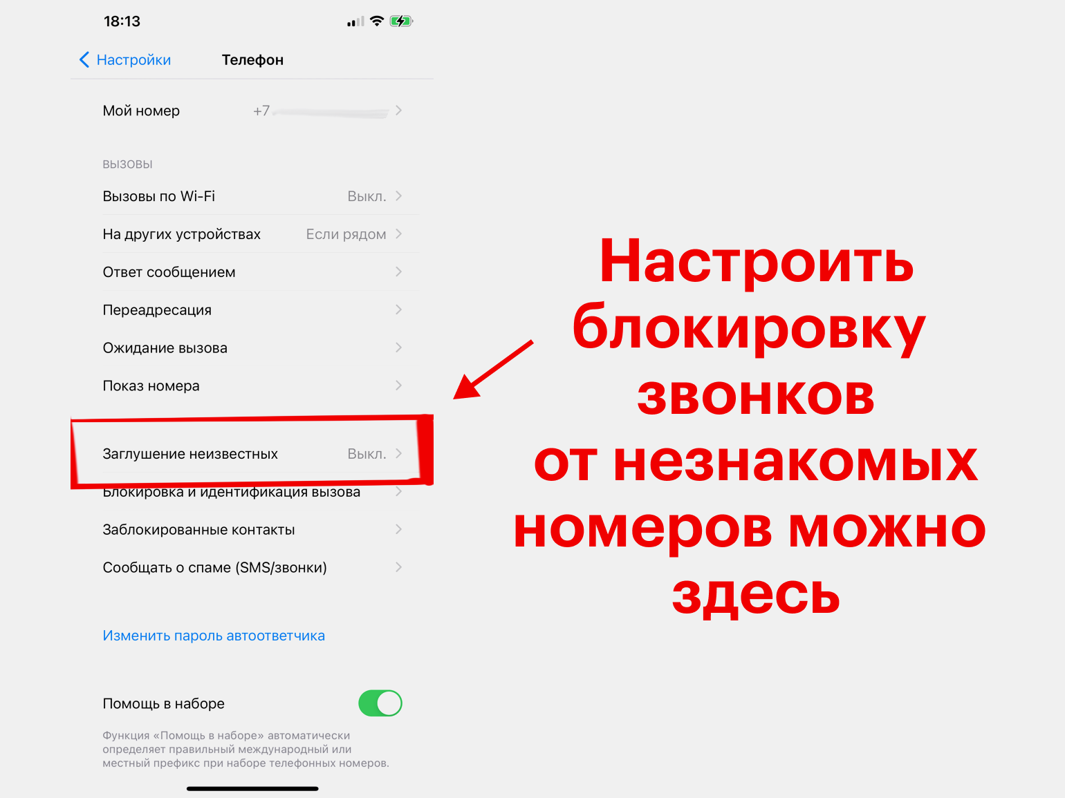 Включить её можно так: «Настройки» → «Телефон» → «Заглушение неизвестных». Вызовы неизвестных номеров будут заглушены, отправлены на автоответчик и отображены в списке «Недавние».