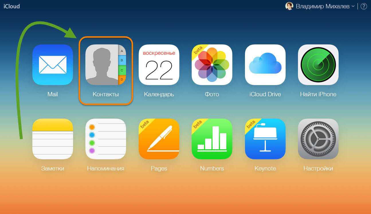 Также данные можно перекинуть через iCloud. Перед выполнением данной процедуры в настройках Айфона зайдите в раздел «iCloud» и включите там пункт «Контакты» (поставьте переключатель в такое положение, чтобы он стал зеленым). Теперь скопируйте данные: