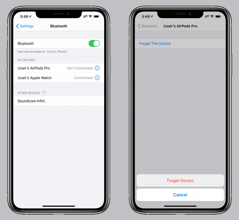 Шаг 2. Удалите AirPods Pro из меню Bluetooth вашего iPhone, iPad, Mac, Mac, Windows или устройства Android.