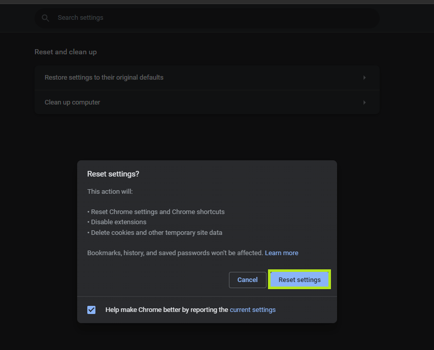 What Settings Will or Won’t Reset in Chrome Reset Process