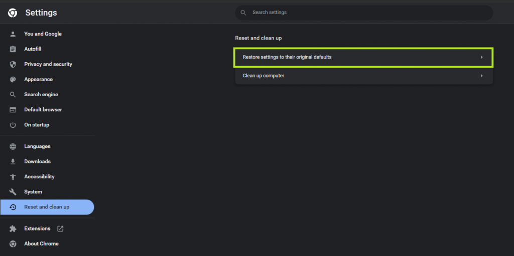 This will soft reset the Chrome browser and won’t delete or change any settings on the browser.