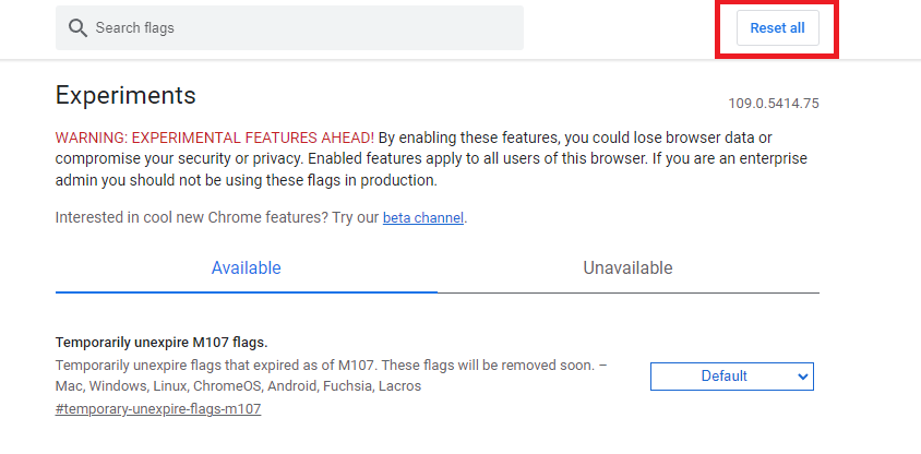 1. On the Chrome browser, go to the Flags menu (chrome://flags/).