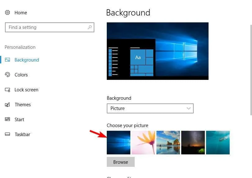 Вероятно, самый простой способ решить эту проблему — установить фон из приложения «Настройки».