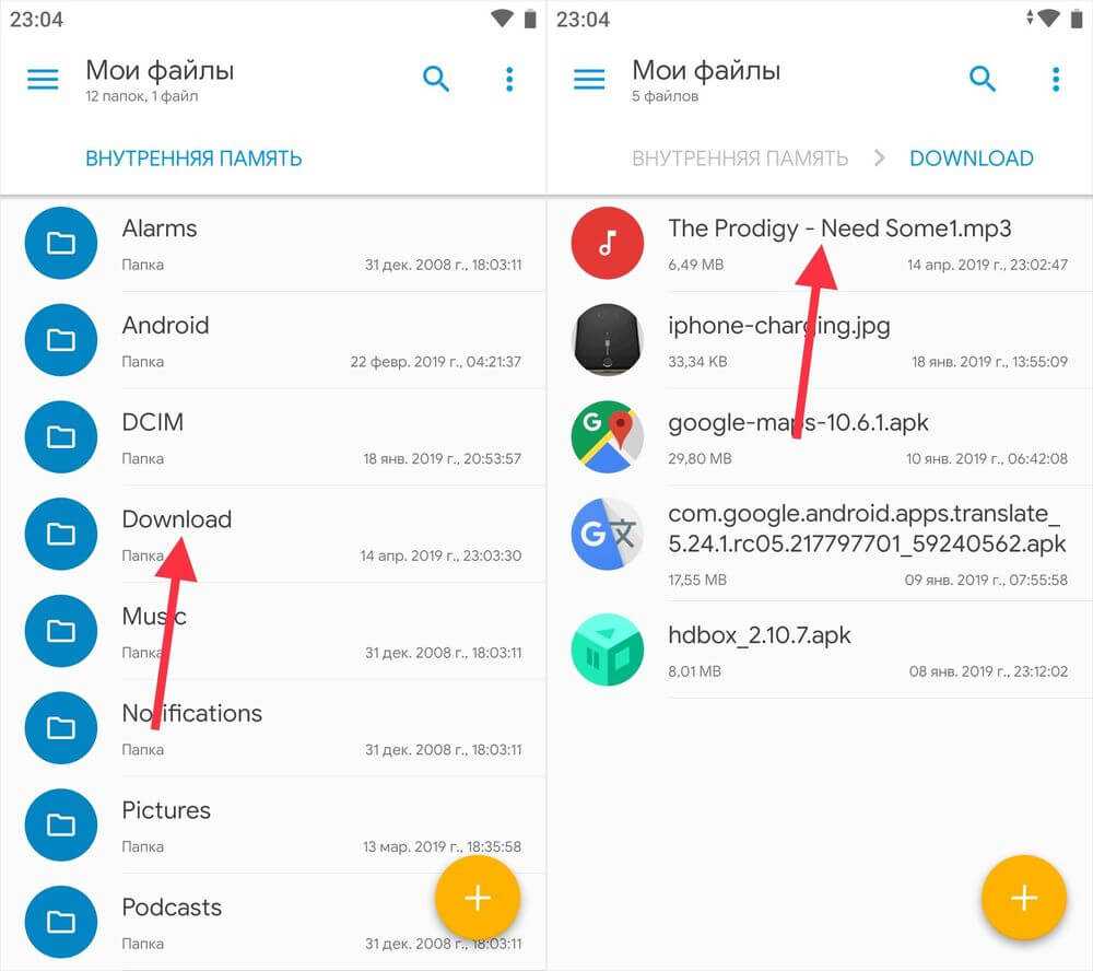 Если вы загружаете музыку через браузер на смартфоне, скачанный аудиофайл будет находиться в каталоге «Download».