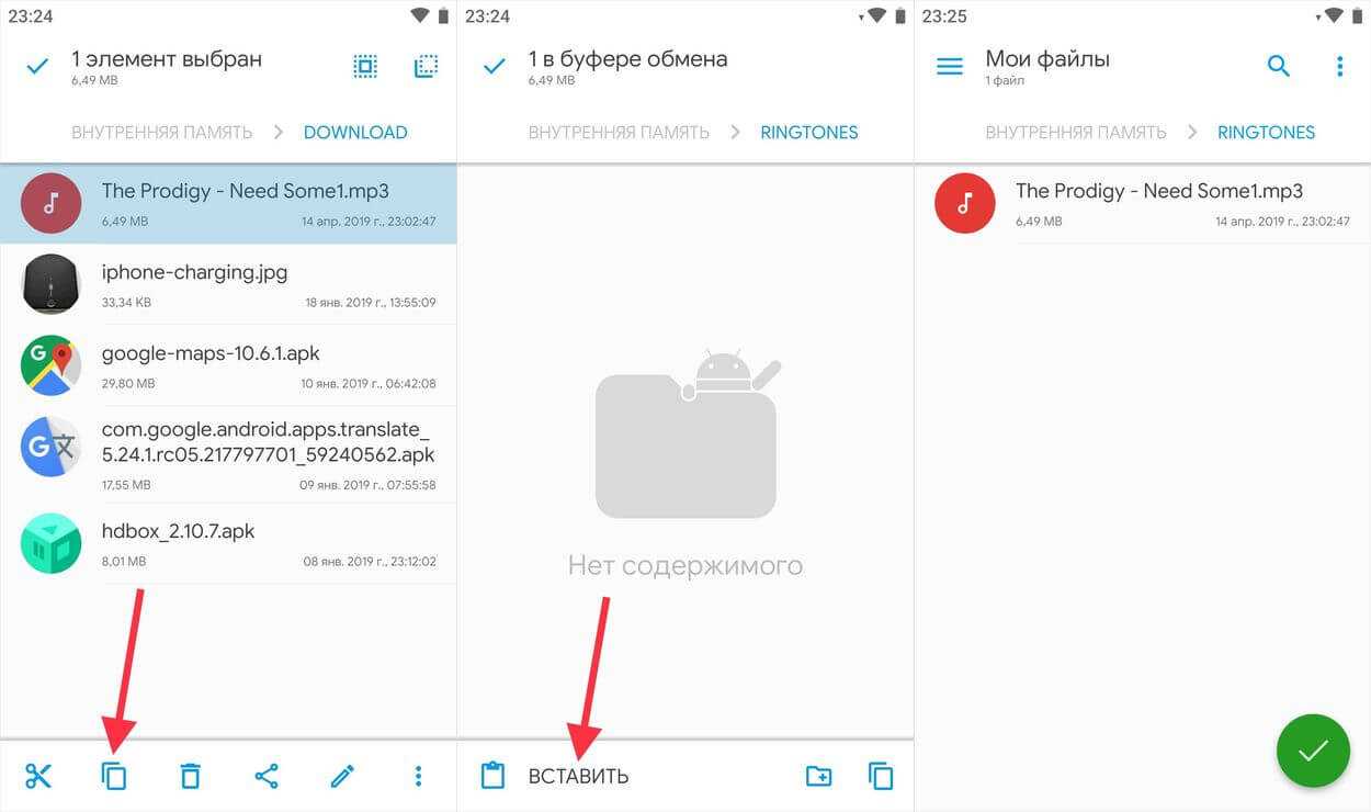 Переместите песню в «Ringtones». Для этого зажмите и удерживайте палец на аудиофайле до появления дополнительных опций. Щелкните на пункт «Копировать», перейдите в папку «Ringtones» и нажмите на кнопку «Вставить» в левом нижнем углу.