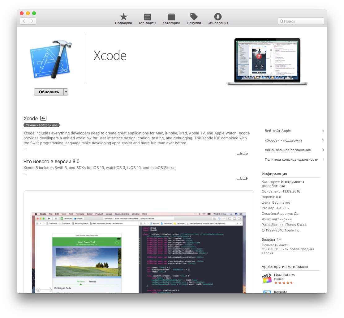 Xcode 8 в Mac App Store