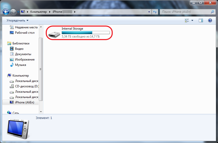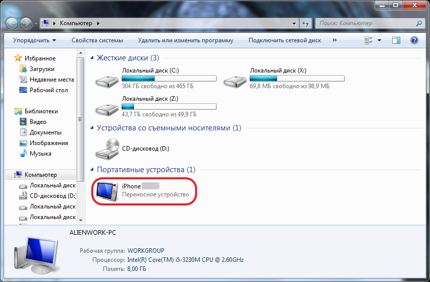 Откройте раздел Компьютер и найдите иконку телефона. Обычно иконка имеет имя Айфона, которое было задано в настройках.
