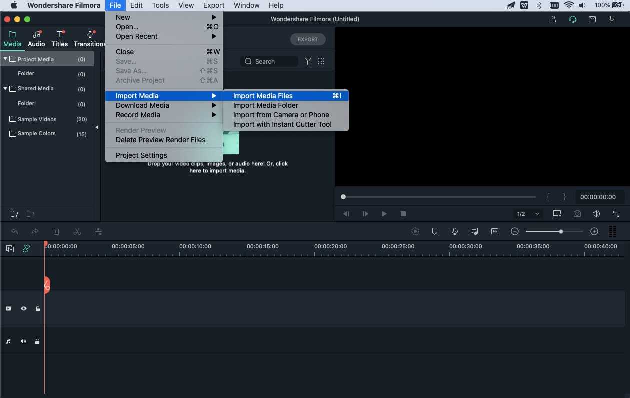 FilmoraTool предлагает широкие возможности импорта, как показано на изображении ниже. Таким образом, вы также можете нажать на кнопку Импорт медиа кнопку, чтобы изучить дополнительные параметры.