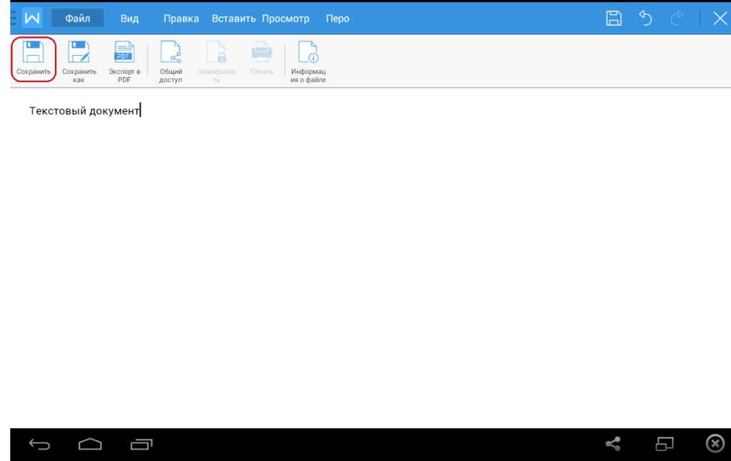 Для сохранения набранного текста необходимо нажать “Файл”, и затем нажать на значок дискетки “Сохранить”.