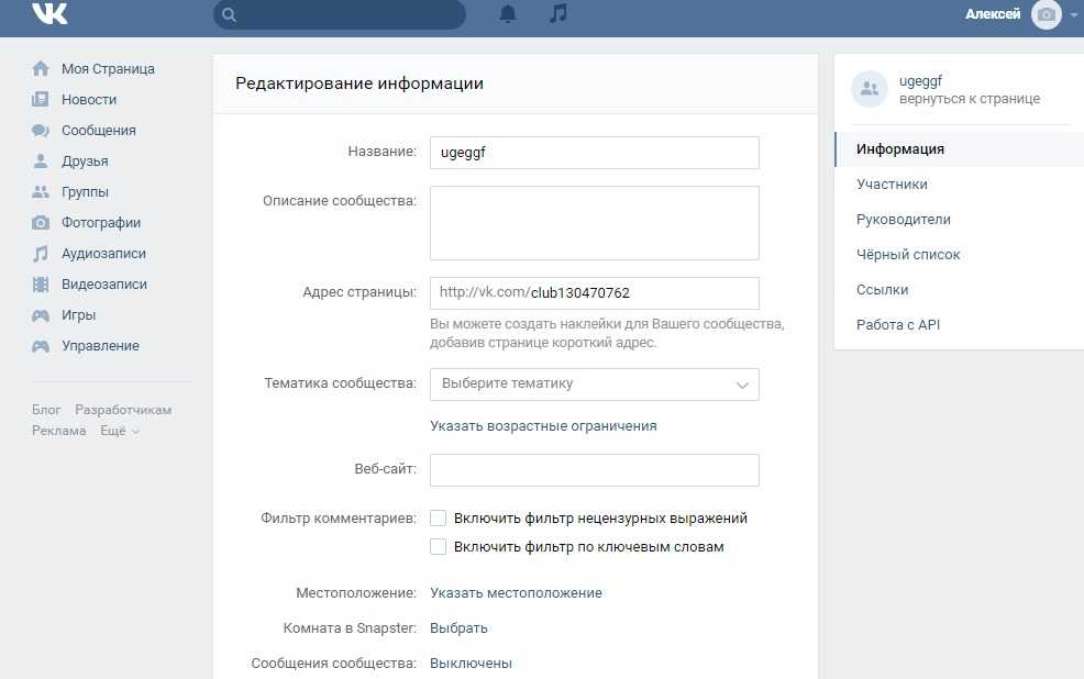 После этого вы сможете настроить сообщество, дать ему имя или аватарку.