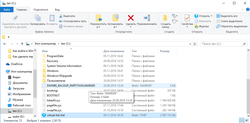 Теперь виртуальное устройство отсоединено, но оно все еще хранится по тому адресу, который вы указали при создании диска. Заходим в файловом проводнике в нужную нам папку, находим там наш виртуальный диск, и удаляем соответствующий VHD-файл полностью вручную — все, как обычно.