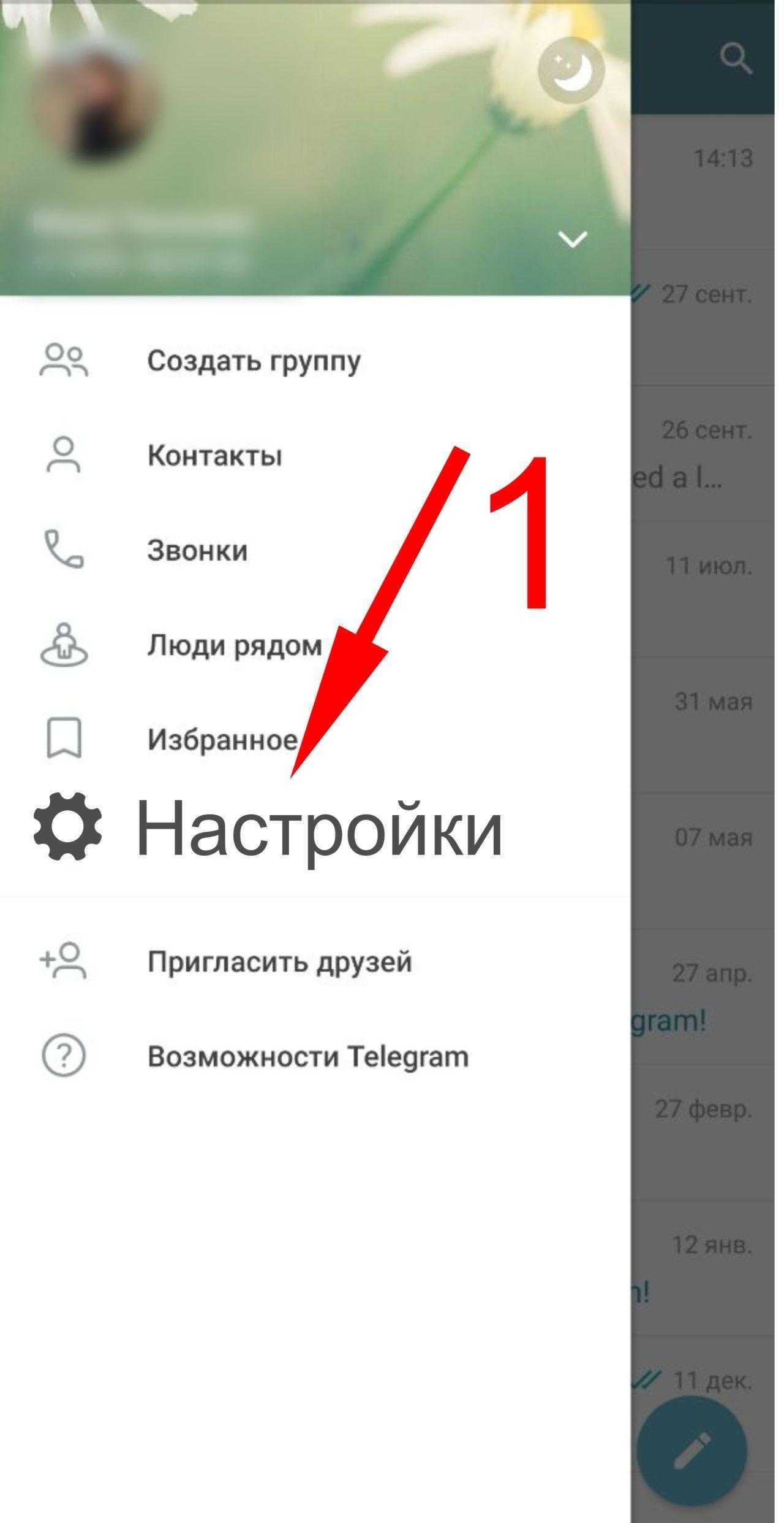 - Перейдите в настройки Telegram, нажав на иконку приложения в левом верхнем углу, затем выберите «Настройки».