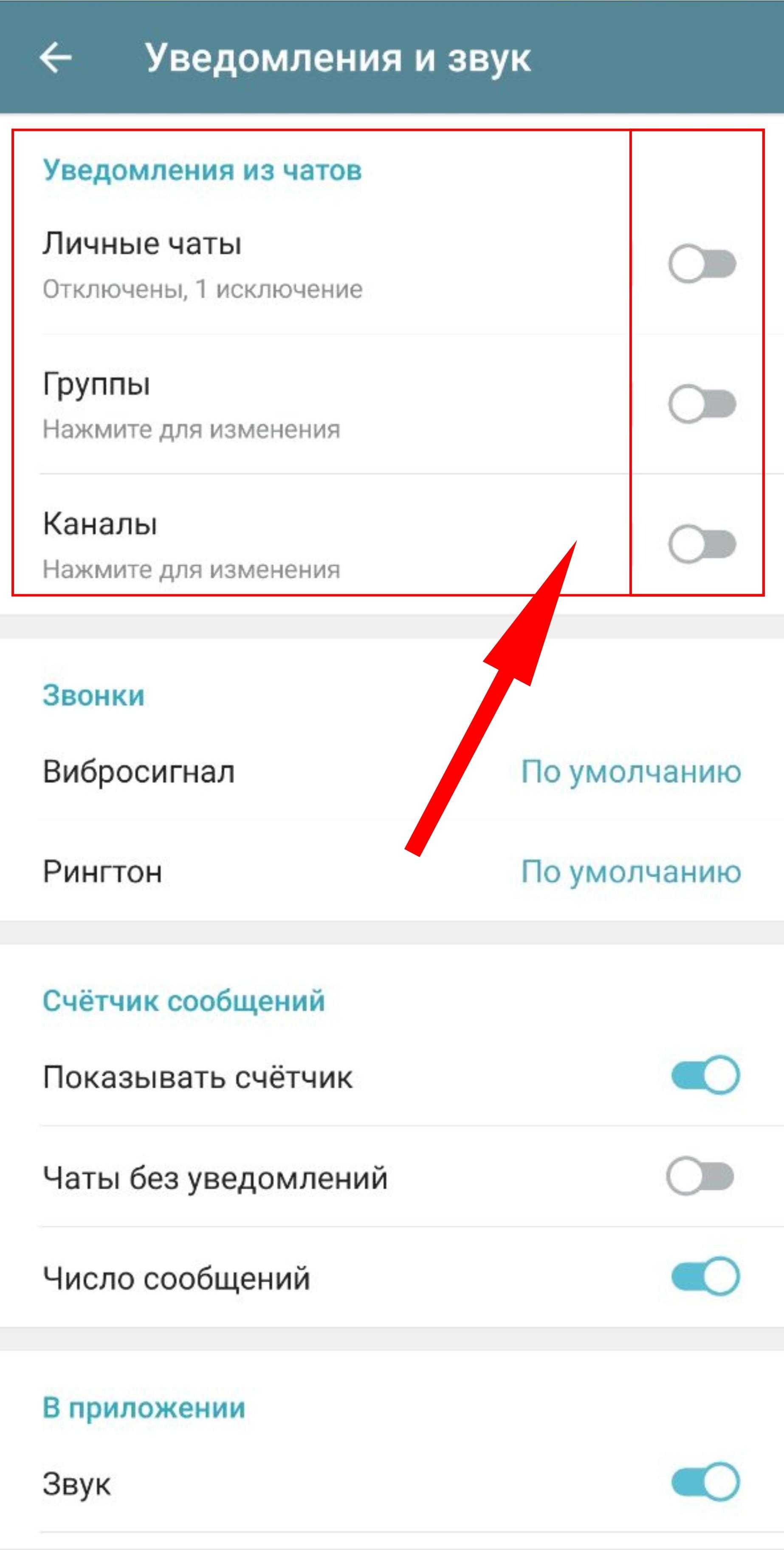 Если вам надоели уведомления из различных чатов, каналов и групп, вы можете отключить их. Для этого: