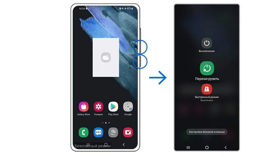- Выключение питания при длительном нажатии . Затем нажмите Безопасный режим . Ваш телефон перезагружается.