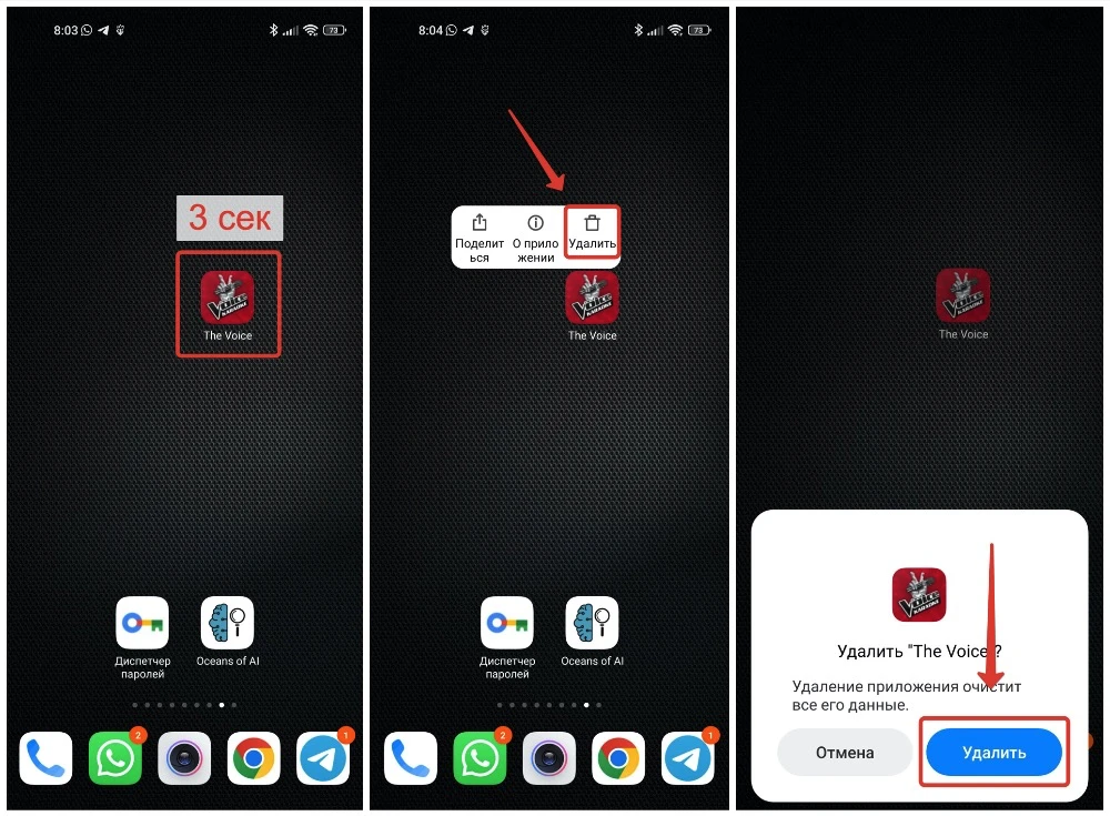 - Нажмите и удерживайте приложение на главном экране или в меню приложения.