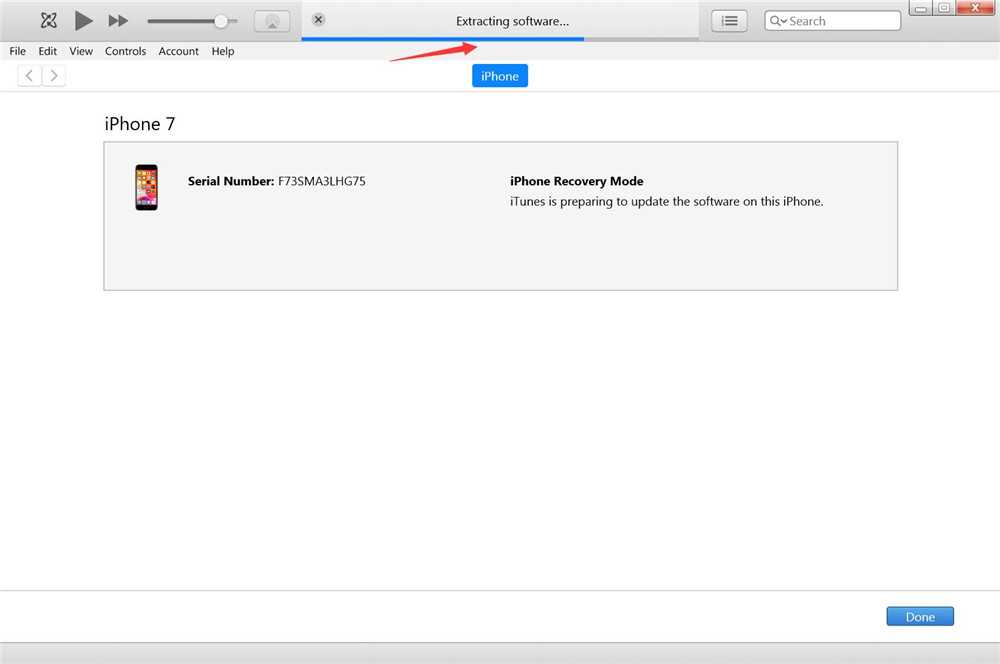 Шаг 6. После завершения загрузки пакета микропрограмм iTunes начнет извлекать программное обеспечение.