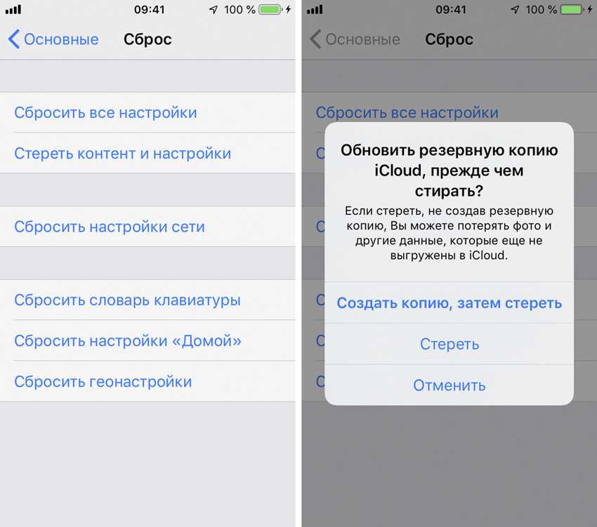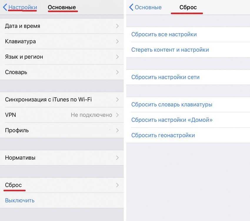 ШАГ 4 — После этого заходим в Настройки > Основные > Сброс и кликаем по «Стереть контент и настройки». Начиная с версии iOS 7, для выполнения этого действия у вас потребуют данные вашего Apple ID.