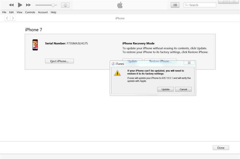 Шаг 7. Пожалуйста, нажмите кнопку «Обновить», чтобы обновить iPhone с помощью iTunes. После завершения обновления все данные и настройки будут удалены.