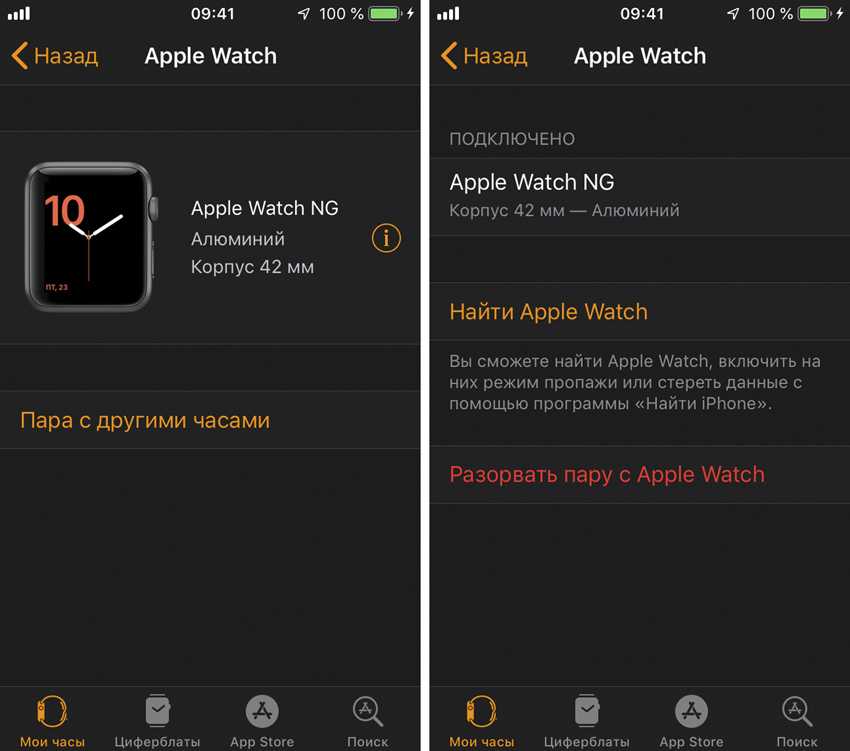 4. Нажмите на кнопку «Разорвать пару с Apple Watch» и подтвердите свое намерение.