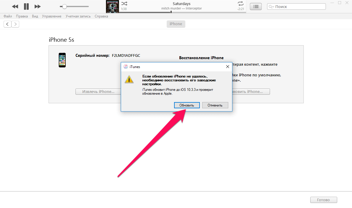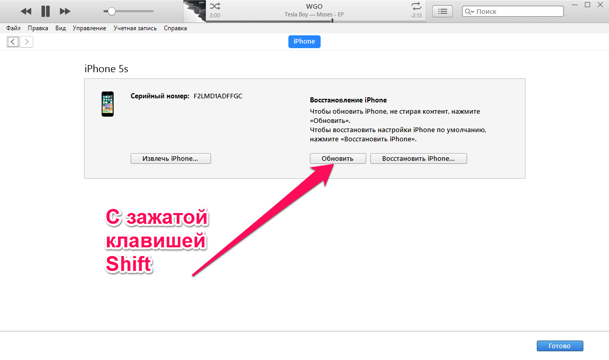 Не отключайте iPhone, iPad или iPod touch от компьютера во время выполнения установки прошивки