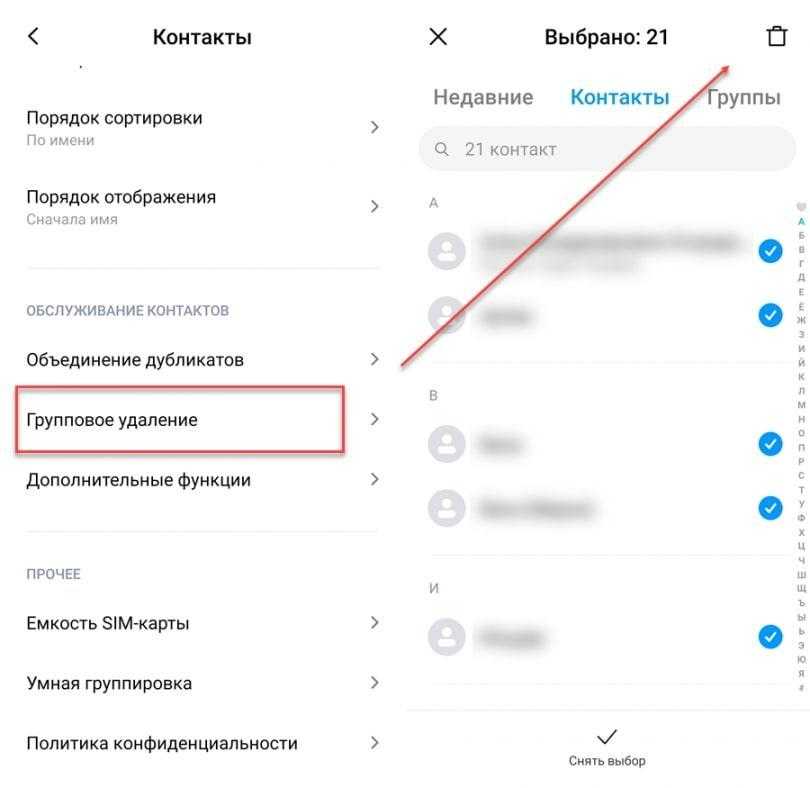 Отличный способ быстро очистить список телефонных номеров — массовое удаление. Это пригодится для людей, у которых в смартфоне или планшете находится большое количество сохраненных контактов. В таком случае удалять по одному — не вариант, потому что на это уйдет много времени. Чтобы удалить сразу несколько телефонных номеров, нужно сделать следующее: