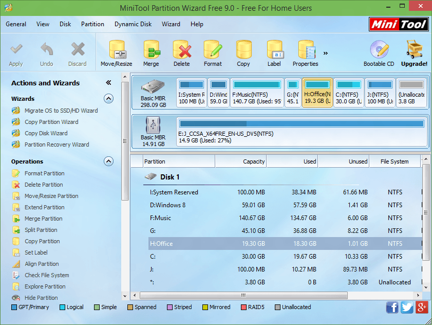 Программа также содержит полный набор инструментов, которые помогут разделить, объединить разделы диска и изменить их размеры. В отличие от Minitool, Partition Assistant русифицирована и будет понятна любому отечественному пользователю.