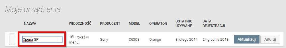 рядом с выбранным элементом, а затем вызовите наш планшет или телефон, затем подтвердите изменение имени кнопкой «Обновление»