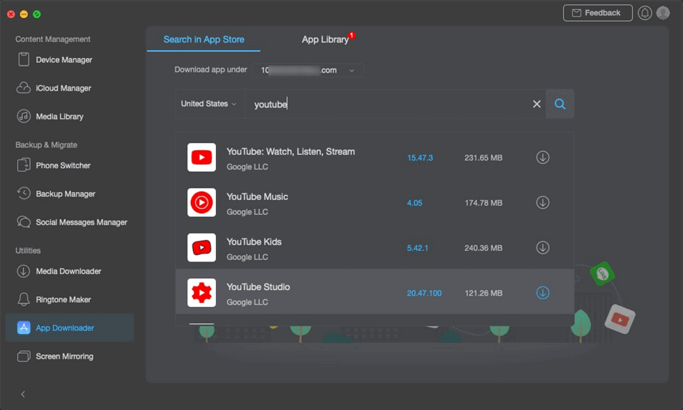 Open AnyTrans and go to App Downloader > Sign in your iCloud account > Enter the app name from the search bar and click the download icon.