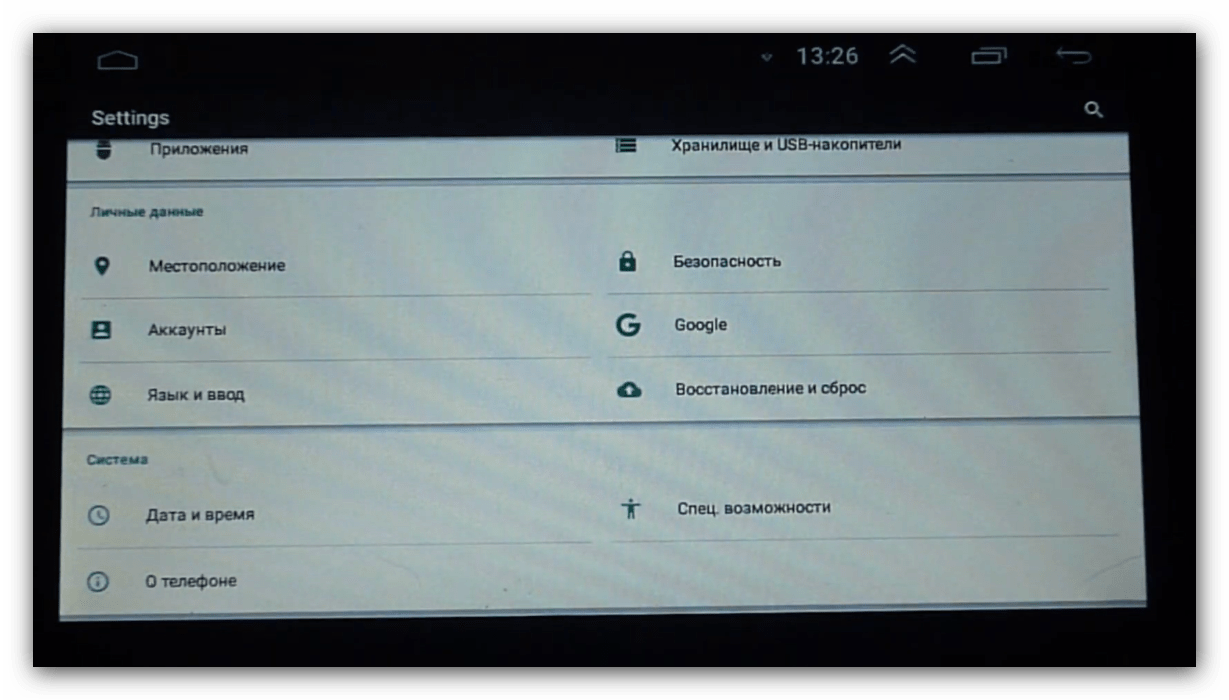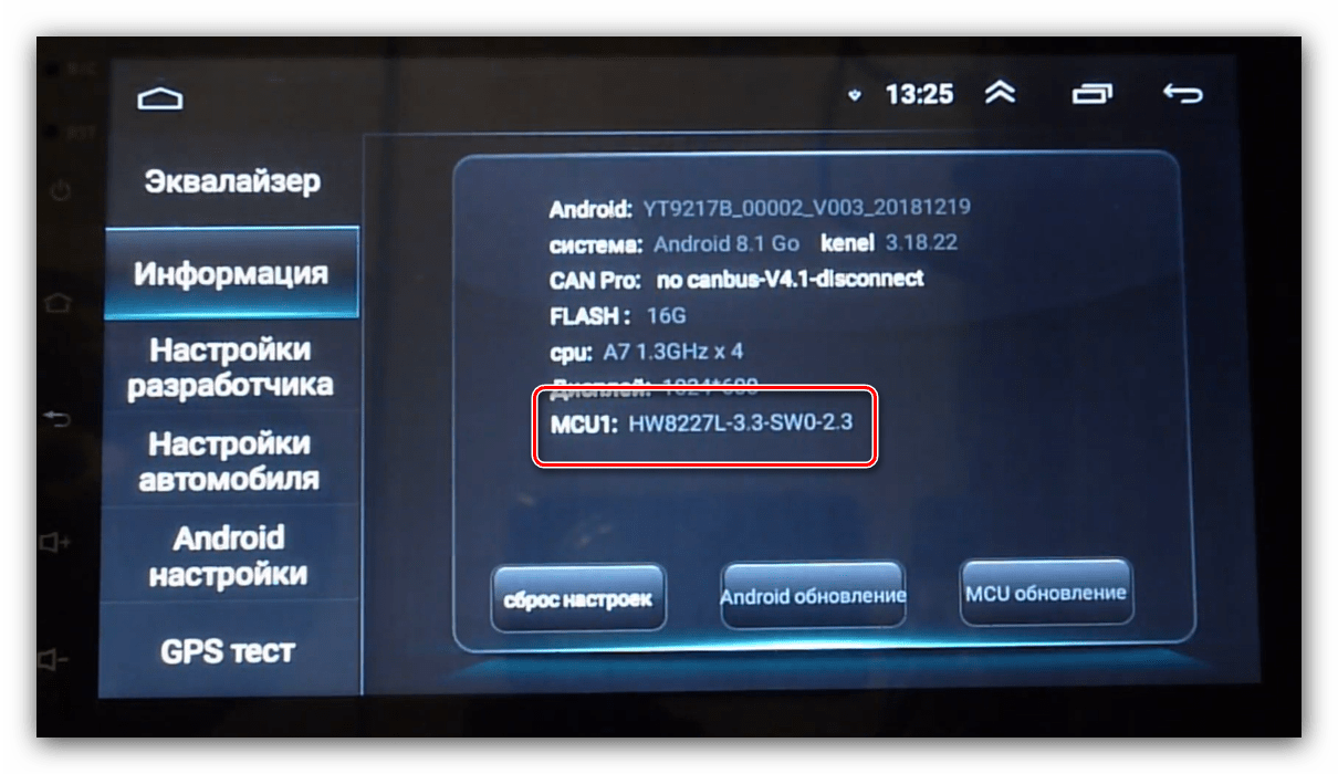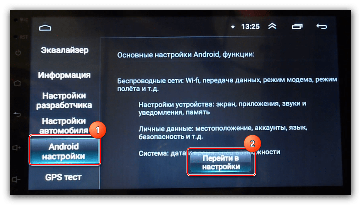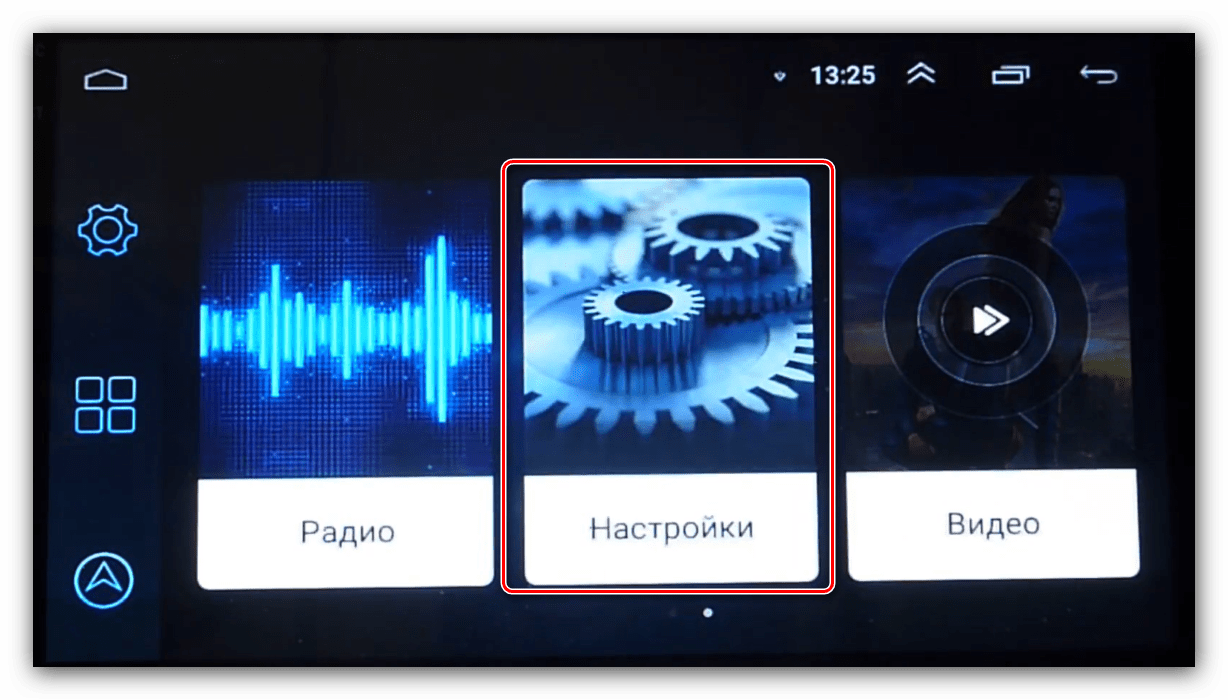 - Первым делом следует определить конкретную модель вашей автомагнитолы. Самое простое решение этой задачи заключается в использовании настроек девайса – откройте его главное меню и тапните по соответствующей иконке.