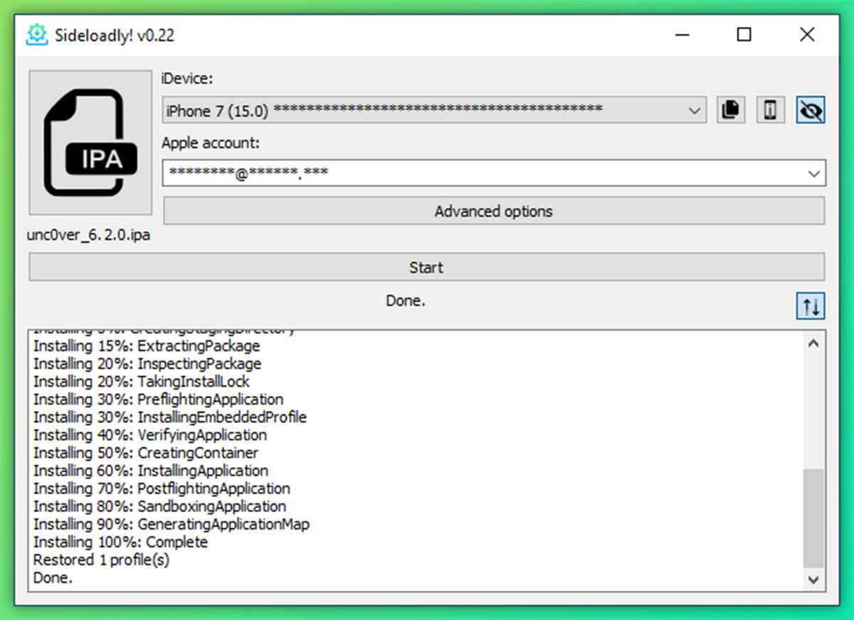 После завершения этих шагов выбранное вами .apk приложение должно быть установлено на вашем устройстве iOS