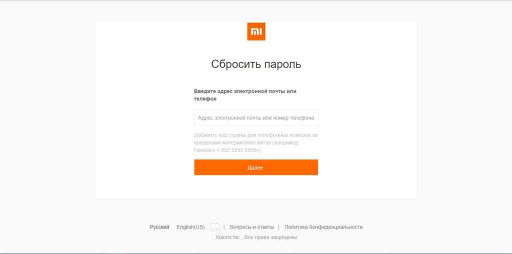 - Вам будет предложено войти в Mi аккаунт для получения возможности сбросить пароль, если вы его забыли;