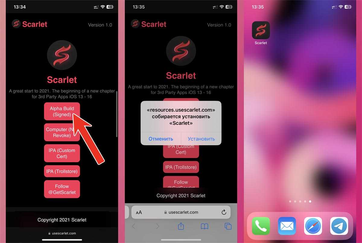 ◈ Откройте сайт нужного проекта в Safari на iPhone. Например, вот сайт сервиса Scarlet.