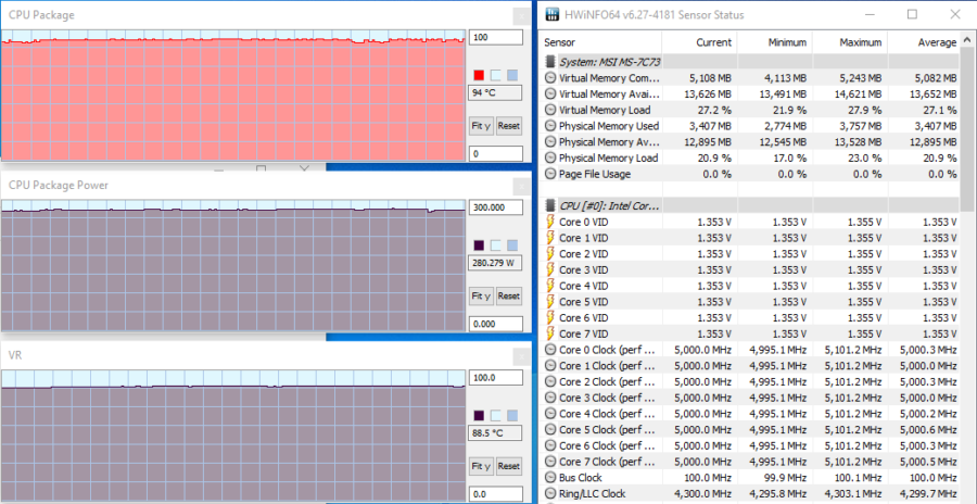 280 Вт. В таком режиме после получаса нагрузки система питания прогрелась до 88.5°C, что является отличным результатом, учитывая колоссальную нагрузку. В реальных задачах, зона VRM не прогревалась более 60°C без какого-либо дополнительного обдува.