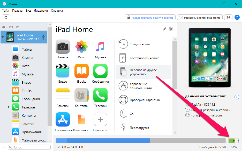 | iMazing | Позволяет проверить состояние аккумулятора и предоставляет возможность управления данными на iPhone, резервного копирования и восстановления данных, а также установки и удаления приложений. |