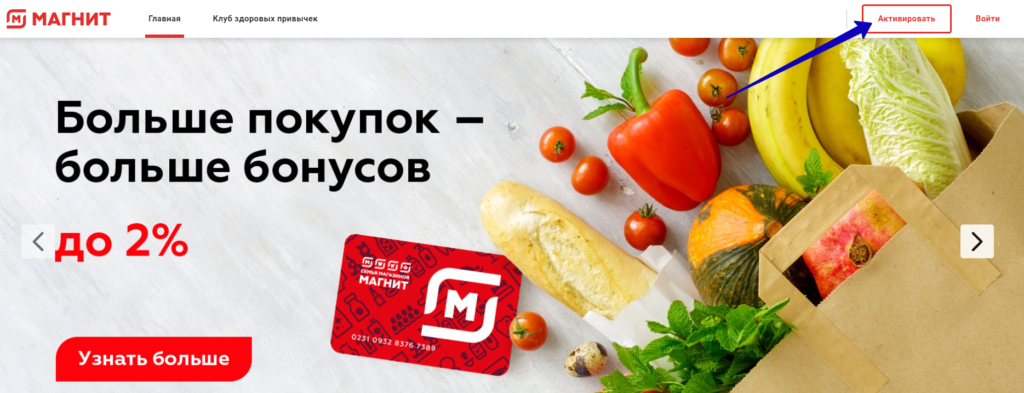 - Для активации физической карты от Магнита нужно нажать на кнопку «Активировать».
