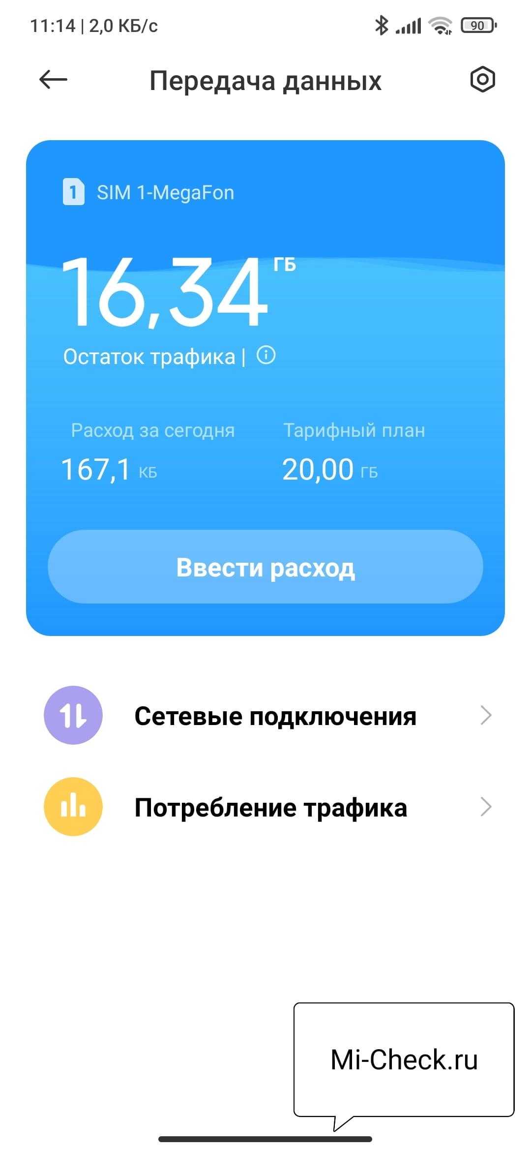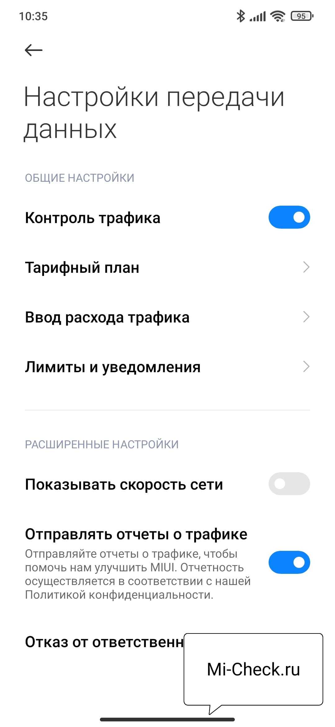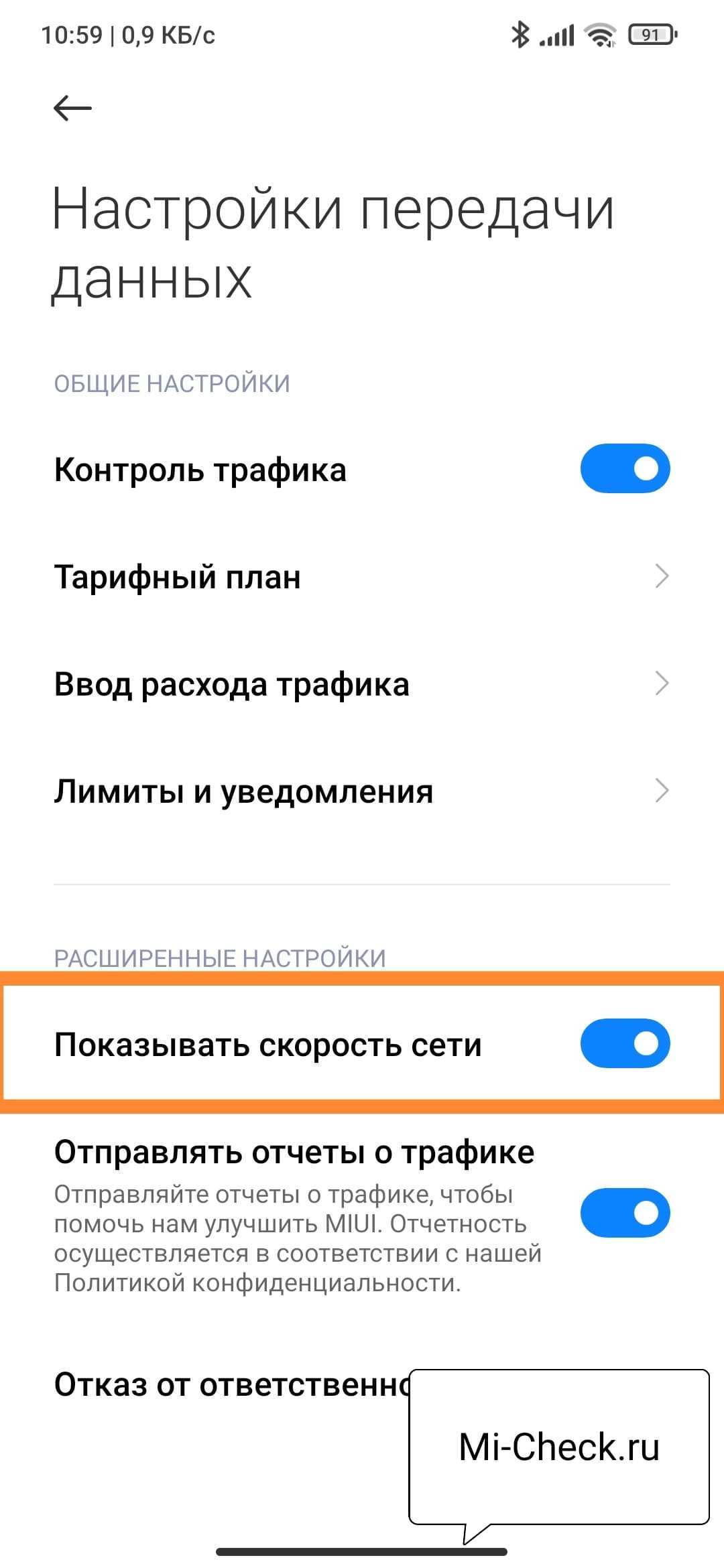 Чтобы включить измерение мгновенной скорости подключения на Xiaomi в том разделе «Передача данных», о котором я рассказал в самом начале заметки, надо перейти в настройки.