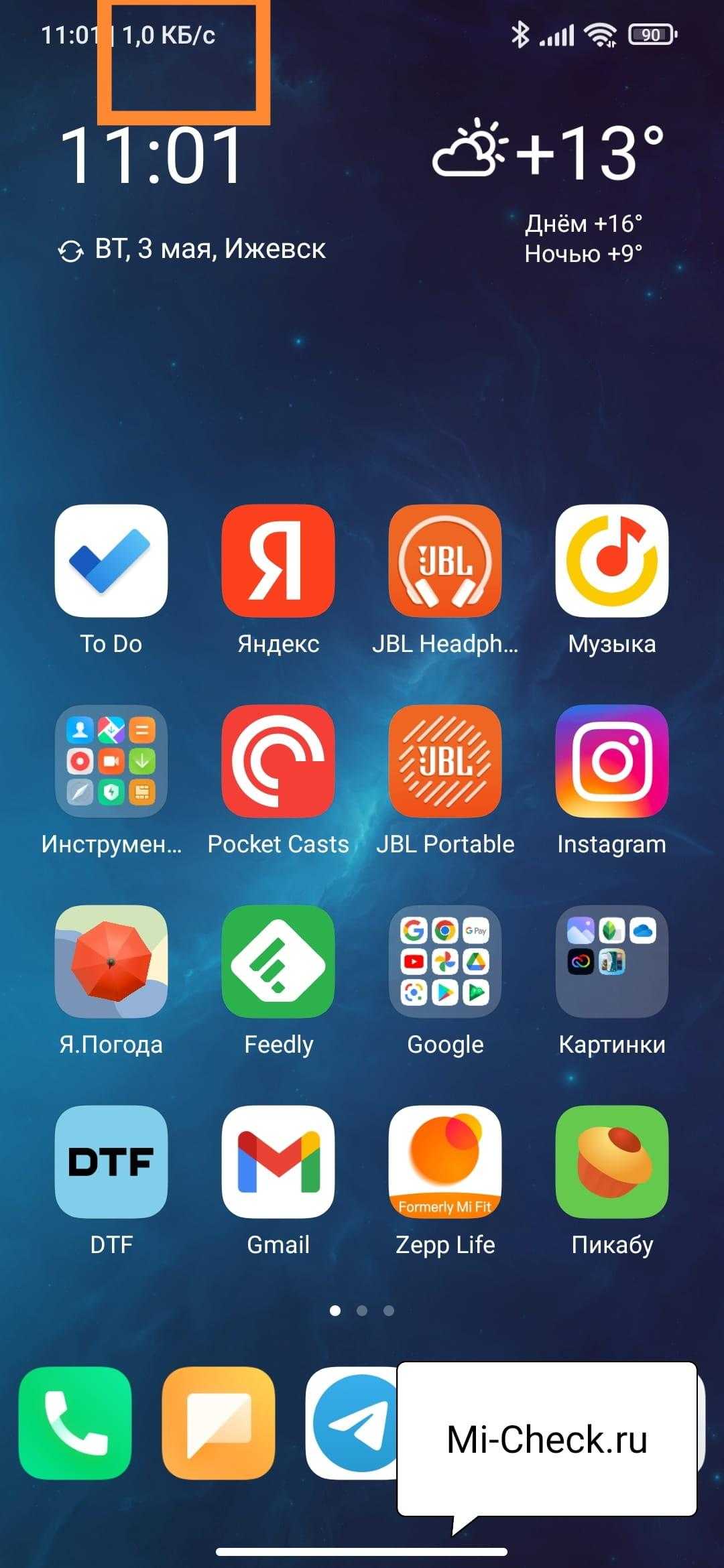 В оболочку MIUI входит настройка, которая на рабочем столе всегда будет показывать текущую скорость потребления интернет-трафика, будь то мобильное подключение или Wi-Fi.